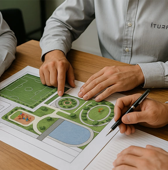 Con nuestro sistema ITurf Play transformamos los parques infantiles en espacios seguros, sostenibles y personalizados, certificados según las normas de seguridad más exigentes.